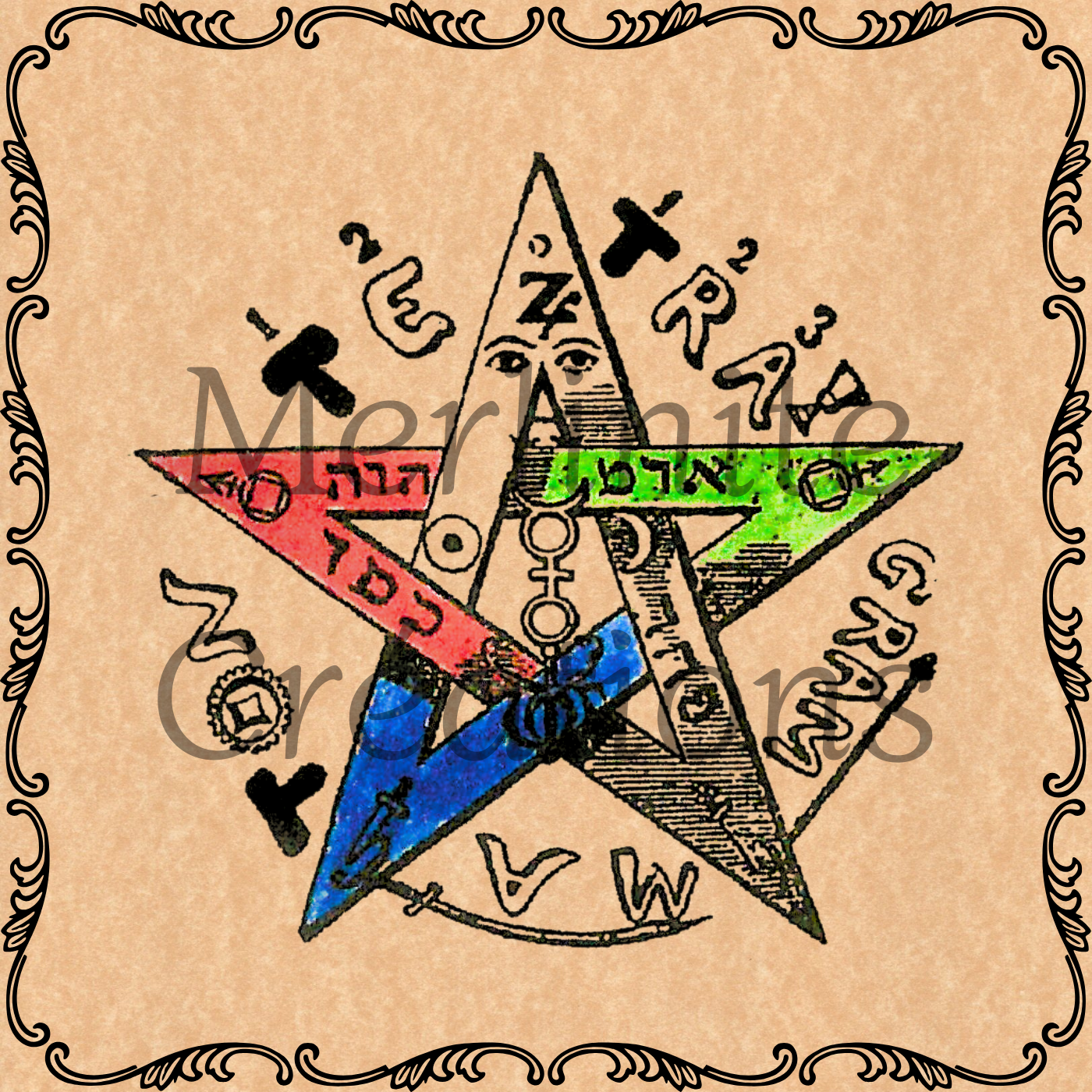 Pantacle sur parchemin végétal, livré avec mode d'emploi et explications complémentaires.