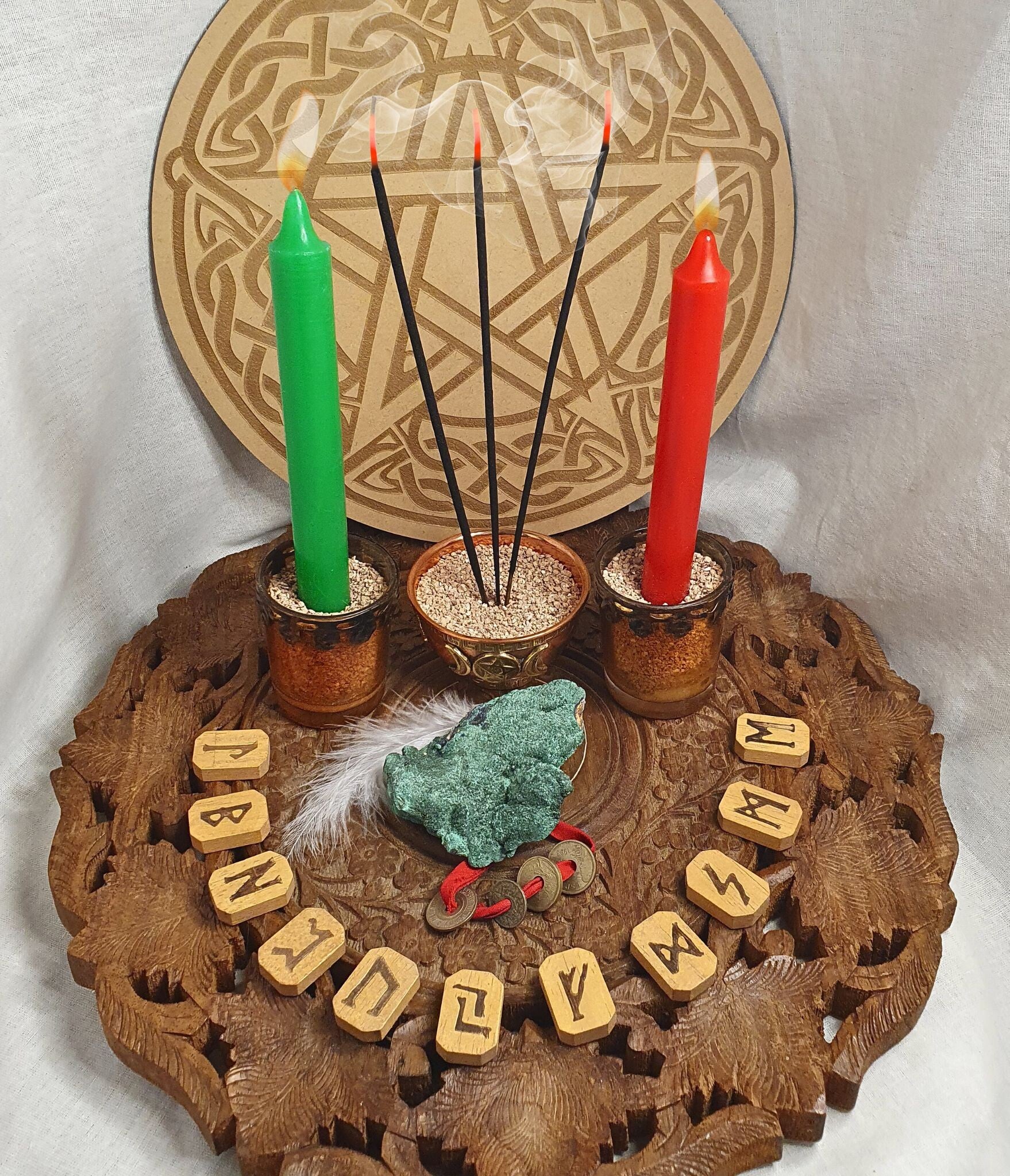 Précautions d’utilisation lors d’un rituel : Ne laissez jamais brûler une bougie, un encens ou un papier sans surveillance. Utilisez un support adapté et gardez-les hors de portée des enfants et animaux. MERLINITE CRÉATIONS décline toute responsabilité en cas d’usage inapproprié.