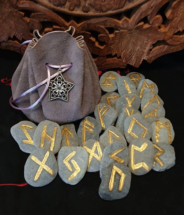 Runes Nordiques sur Galets de Rivière - Gravées et Dorées à la Main