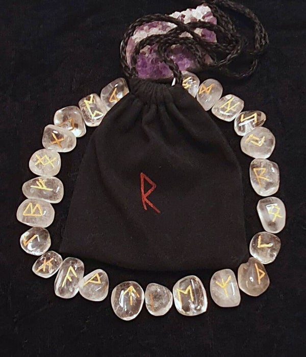 Runes Nordiques en Cristal de Roche - Gravées et Dorées à la Main
