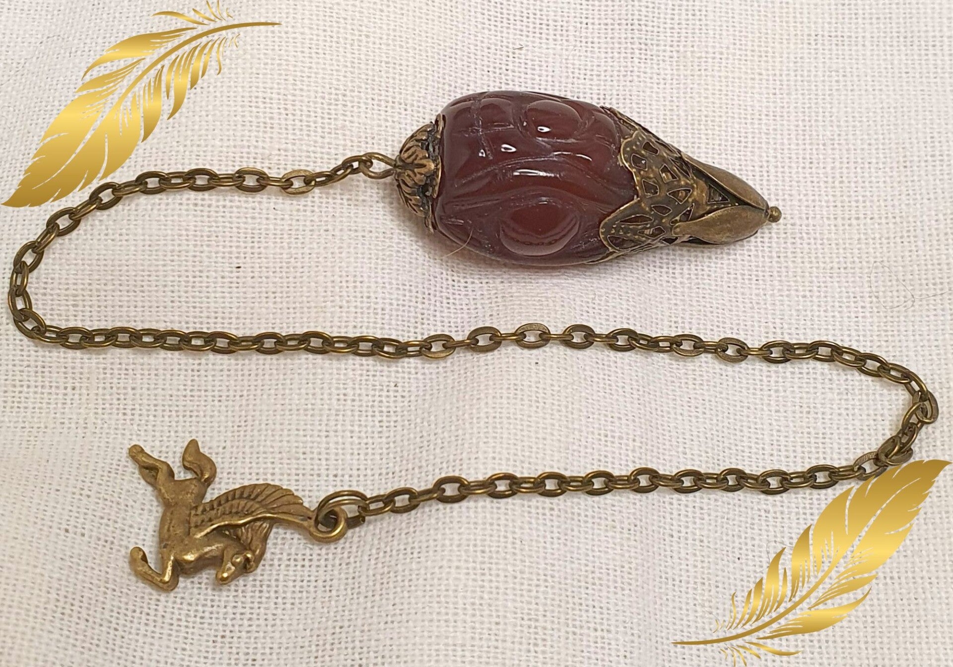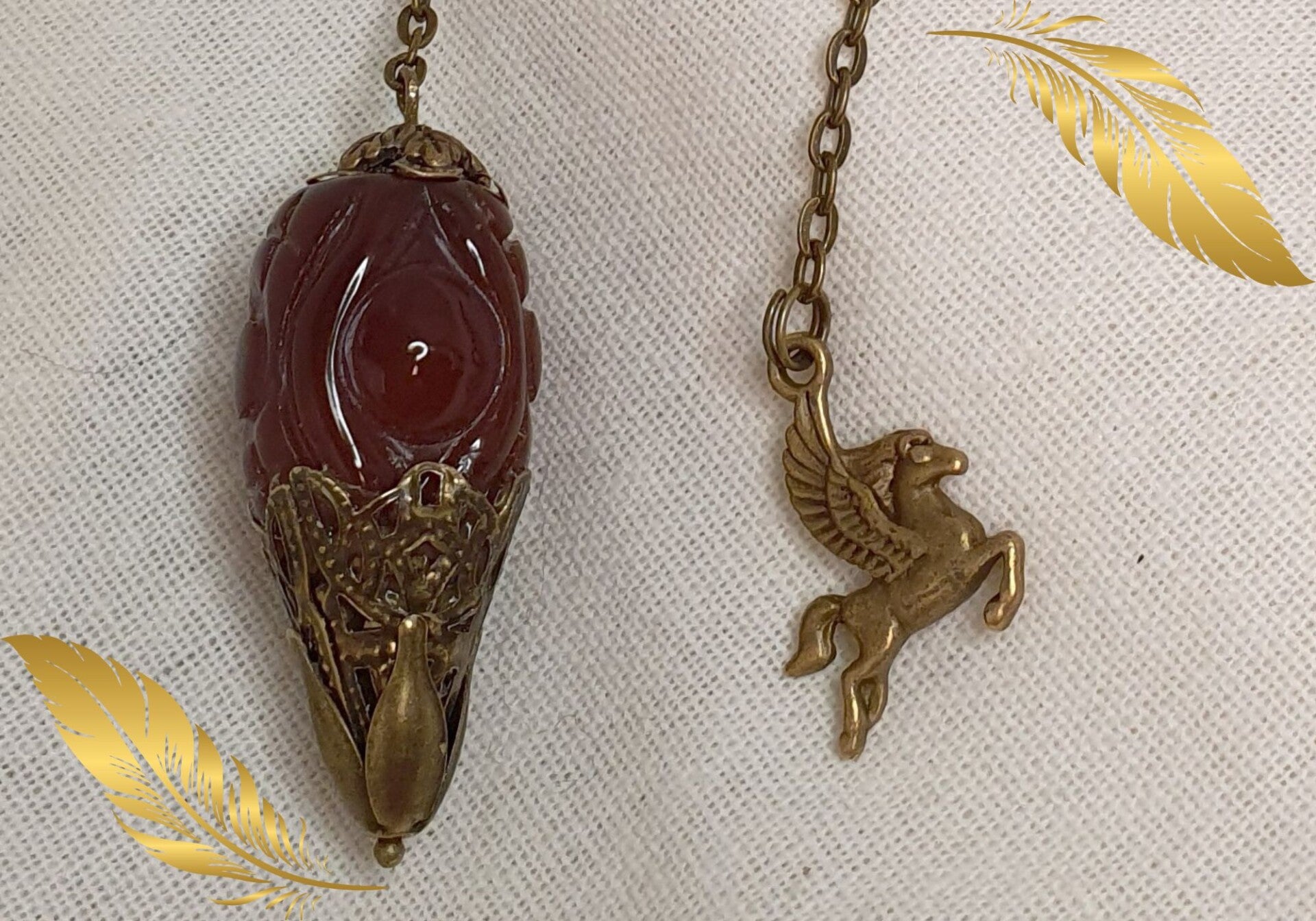 Ce pendule en Cornaline et laiton bronze antique allie énergie, puissance et raffinement. En bout de chaîne, la présence de Pégase, symbole de liberté et d’élévation spirituelle, confère à cet outil une dimension à la fois mythique et lumineuse. Sa conception équilibrée en fait un compagnon fiable et inspirant pour vos pratiques de radiesthésie.