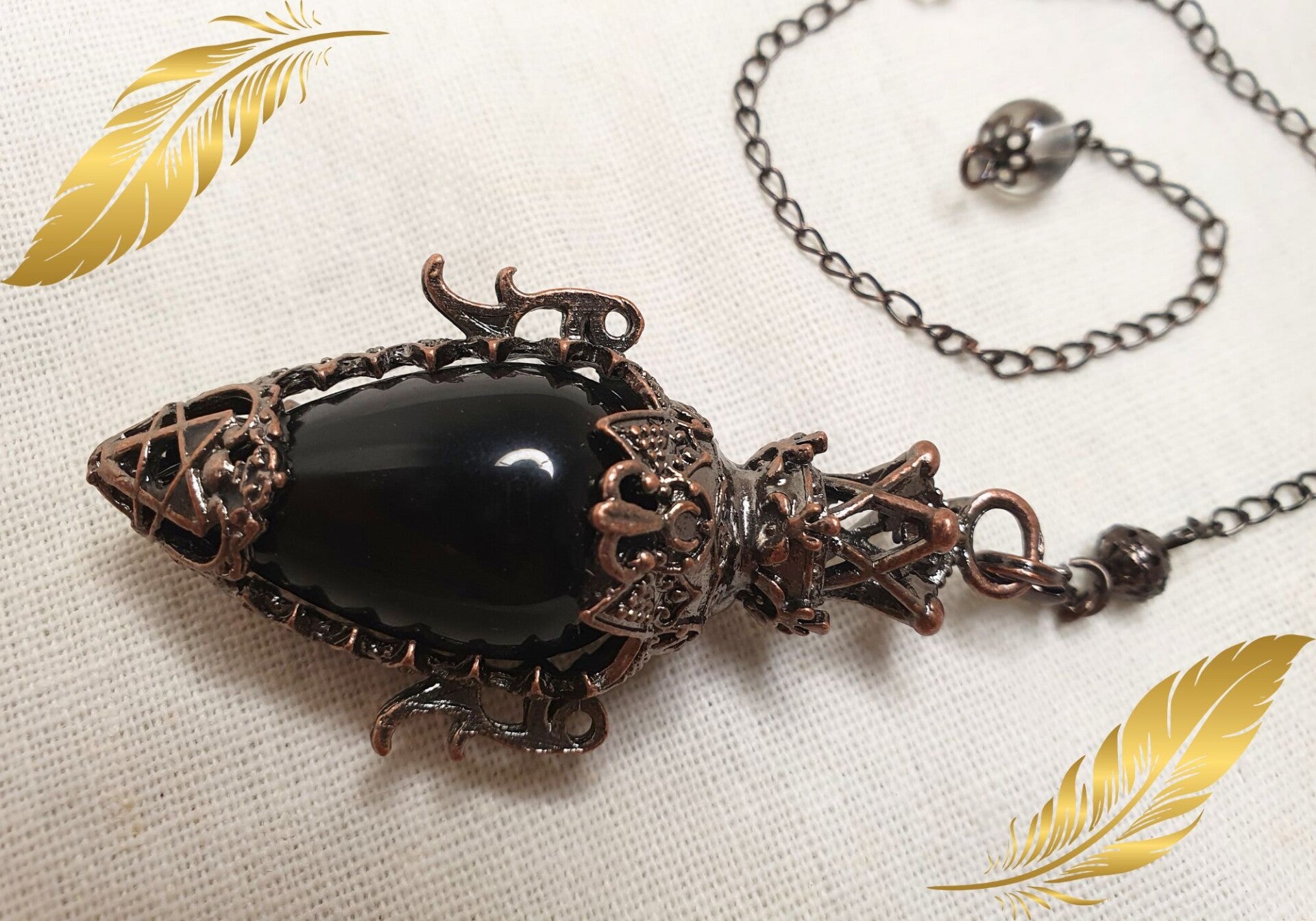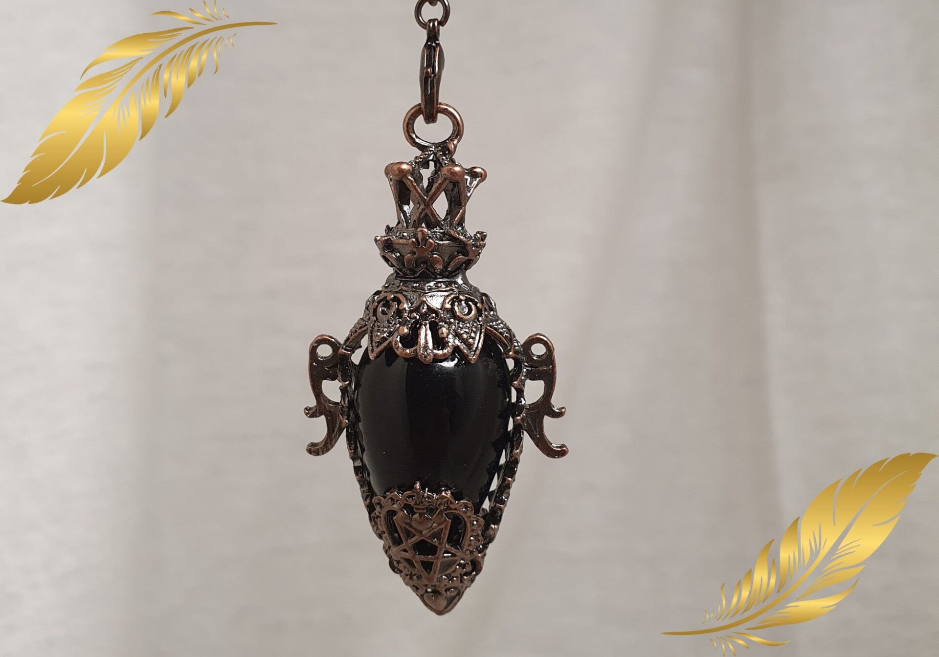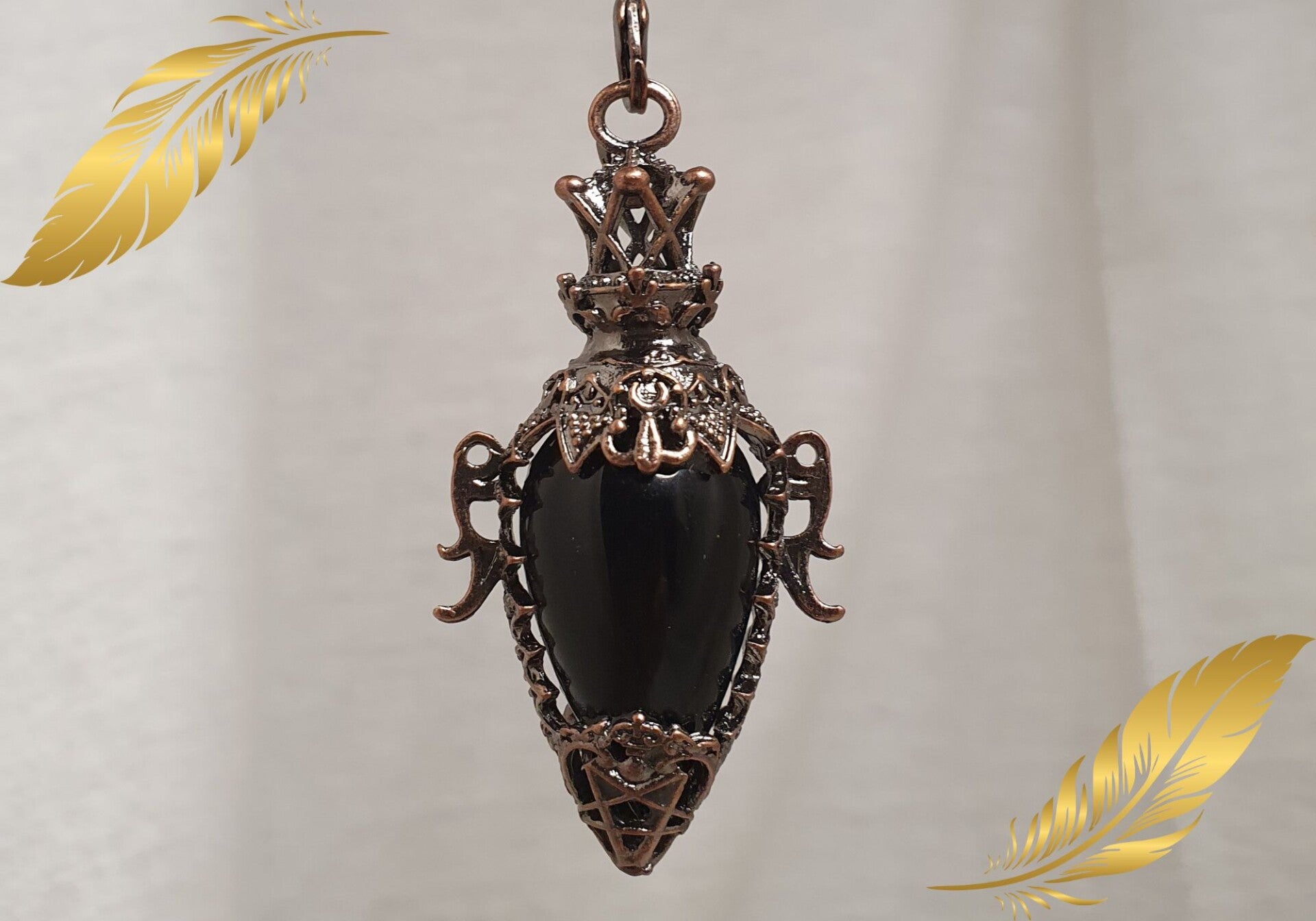 Ce pendule associe la profondeur de l’Obsidienne noire à l’élégance intemporelle d’une finition antique. Symbole de vérité et de protection, l’Obsidienne dissipe les énergies négatives, dévoile les illusions et accompagne l’introspection avec force et authenticité.