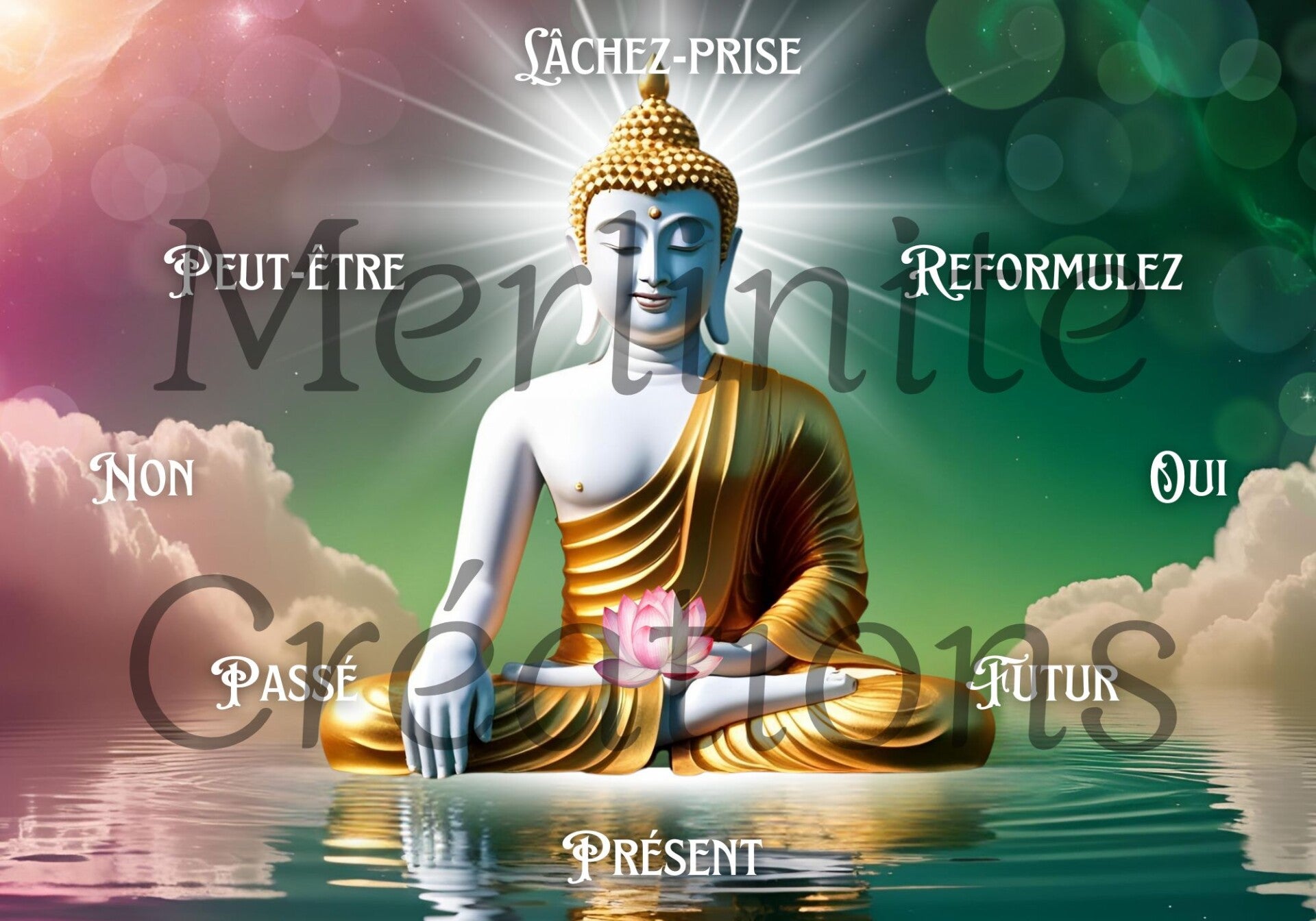 Le Bouddha assis orne cette planche et incarne la sérénité, la compassion et l’éveil intérieur.