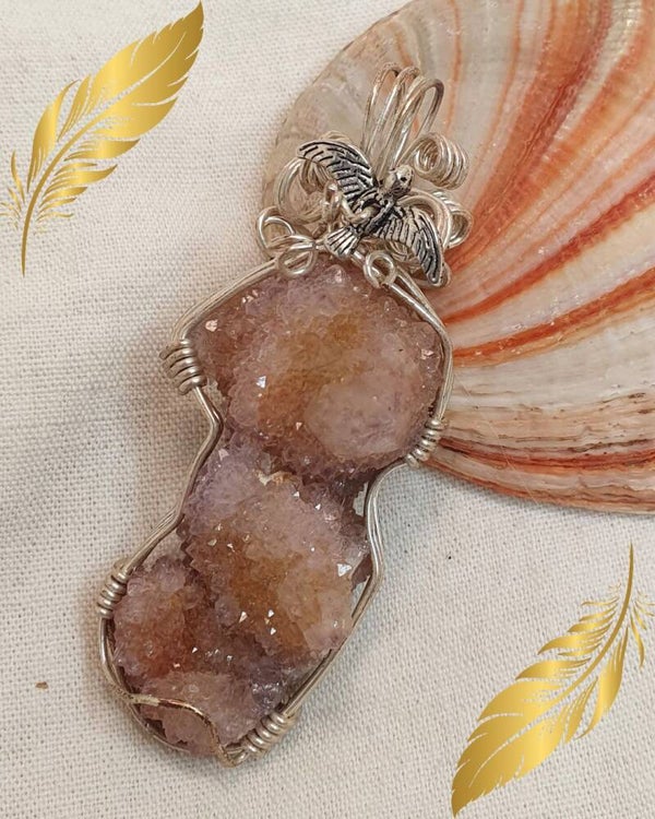 L’Améthyste Cactus, aussi appelée Spirit Quartz, se reconnaît à sa forme unique :