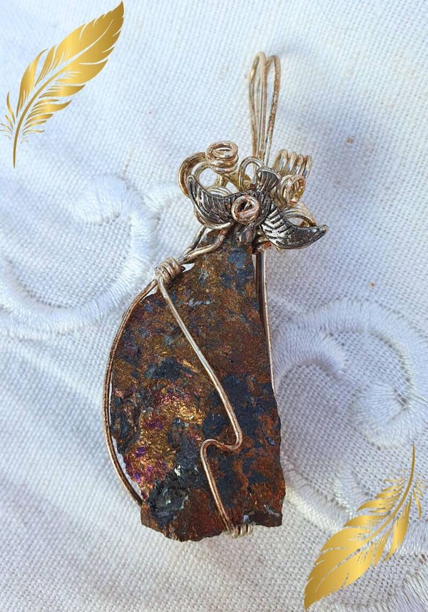 Pendentif en Chalcopyrite & Oiseau Lumière intérieure & Vision de l’Âme