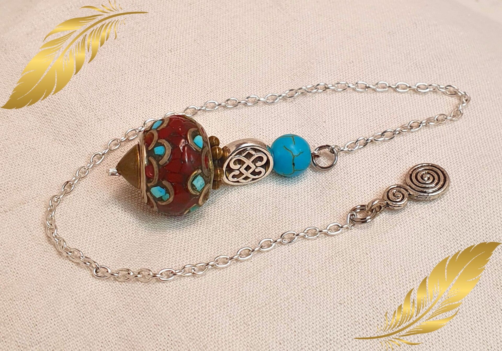 Pendule Tibétain – Turquoise, Corail et Double Spirale