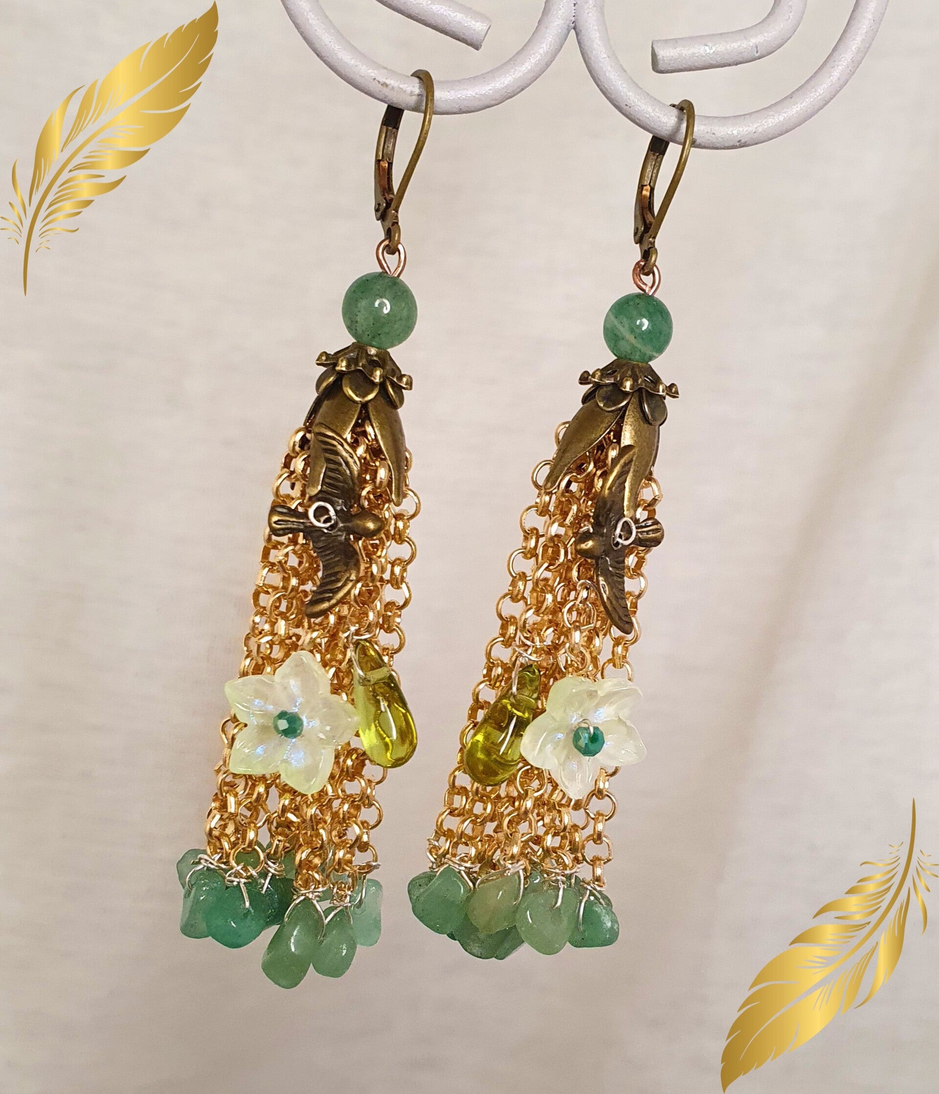 Boucles d'oreilles Fleur d'Aventurine verte - Harmonie, Renouveau & Liberté