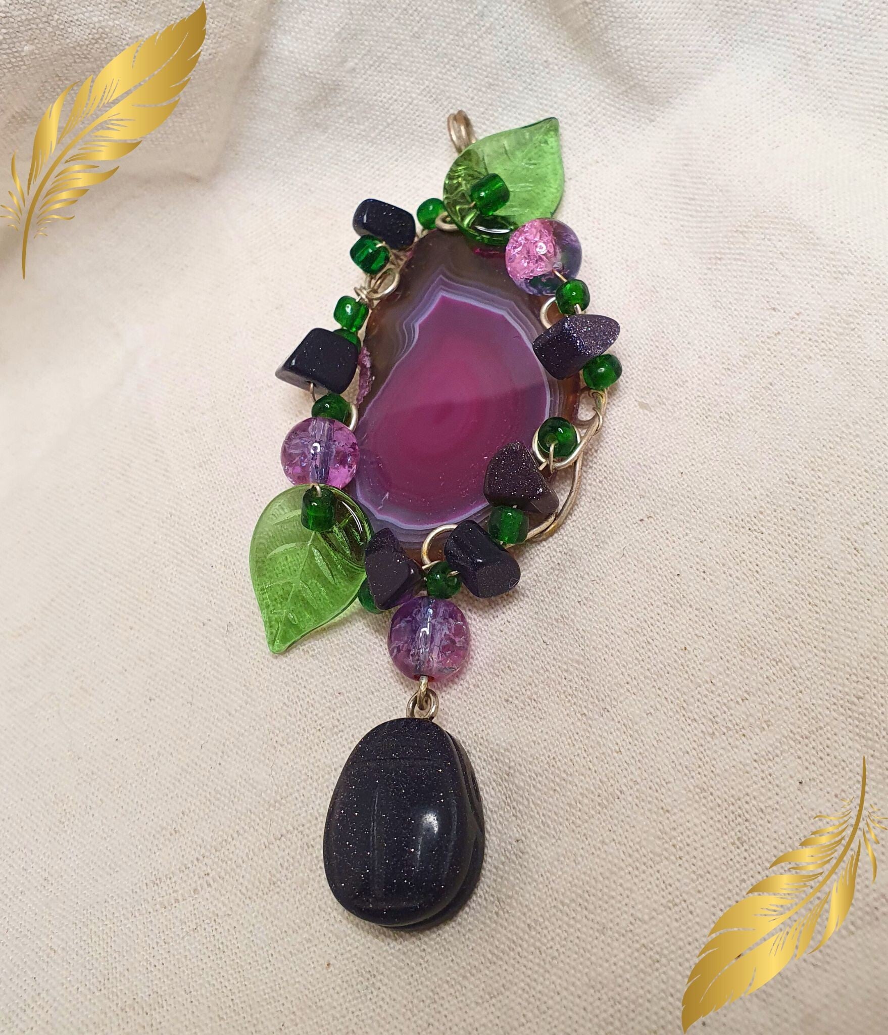 Au bas du pendentif, un scarabée Khepri en pierre d’étoile enrichit la création de sa symbolique puissante.